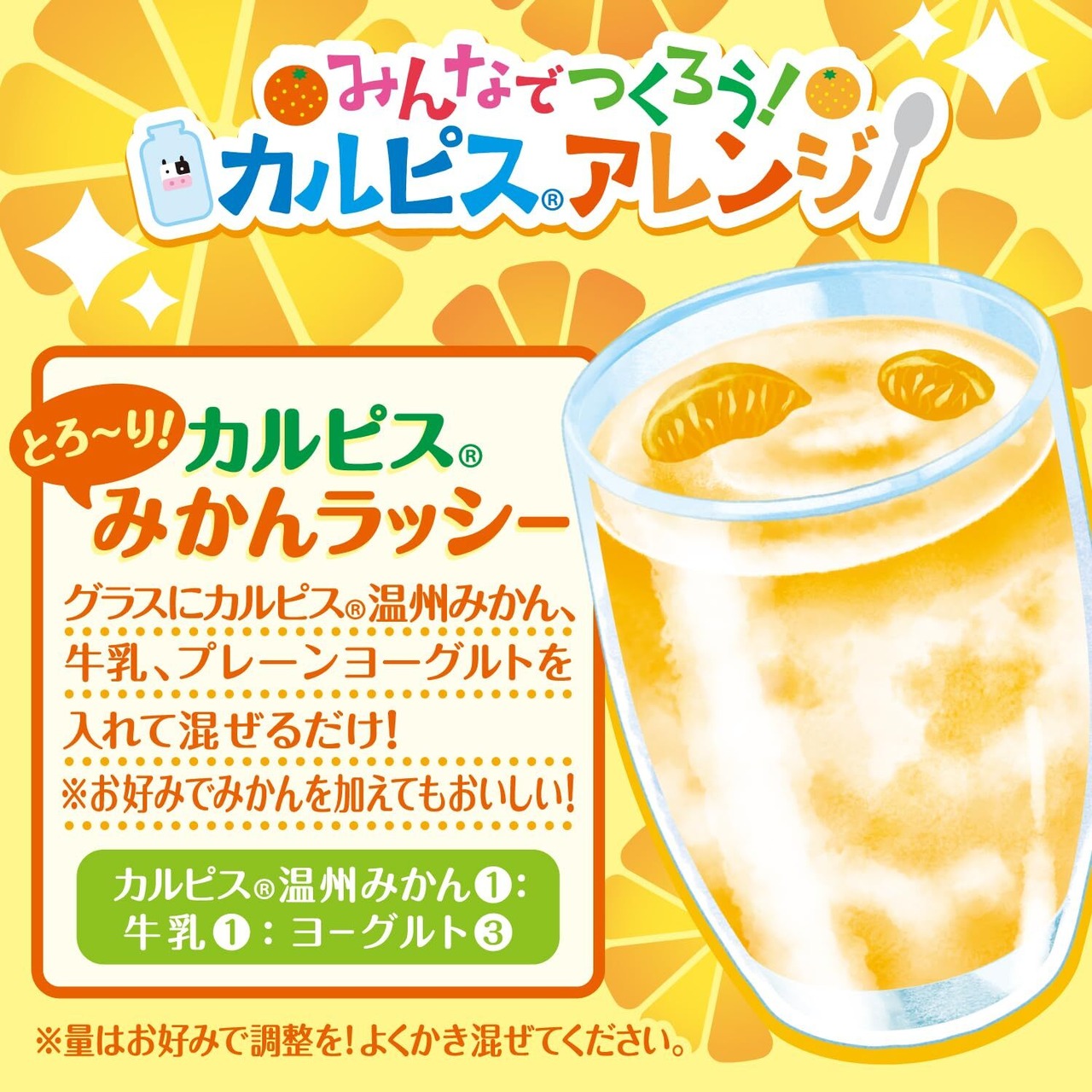 冬の家族の心とカラダにすこやかなおいしさのカルピス(R) カルピス(R)に冬の定番である温州みかん果汁を加えて、大人も子どもも楽しめる甘ずっぱい味わいに仕上げました。 3種のビタミン配合。体調管理が気になる冬の気分転換におすすめです。