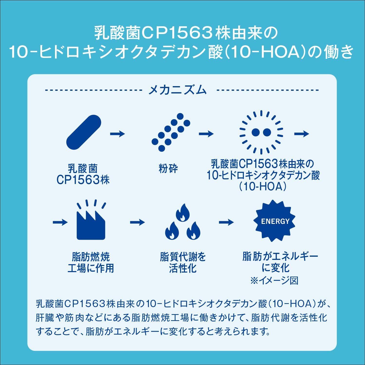カルピス(R)由来の乳酸菌研究により選び抜かれた乳酸菌CP1563株由来の10-HOAを配合した小さなカルピス(R)です。 乳酸菌CP1563株由来の10-HOAには、BMIが高めの方のおなかの脂肪(体脂肪、内臓脂肪)を減らす機能があることが報告されています。 低糖なのにカルピス(R)のまろやかな甘さが楽しめるので、甘いものが欲しいときに気兼ねなくお飲みいただけます。