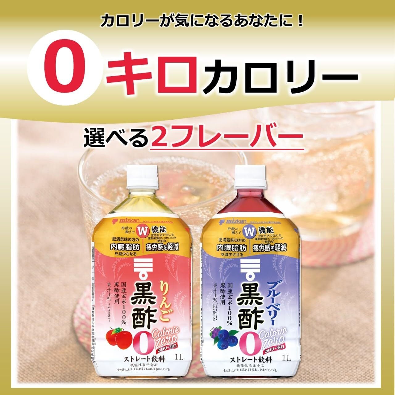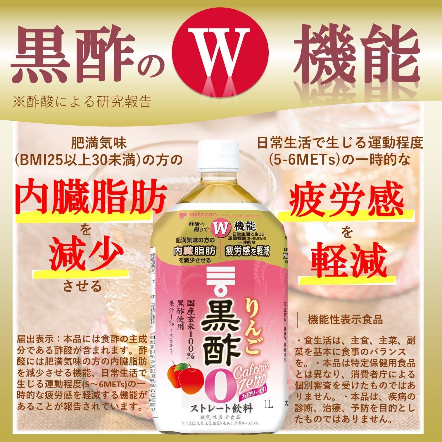[機能性表示食品] 酢酸の働きでW機能。肥満気味の方の内臓脂肪を減少させます。日常生活で生じる運動程度(5~6METs)の一時的な疲労感を軽減します。
