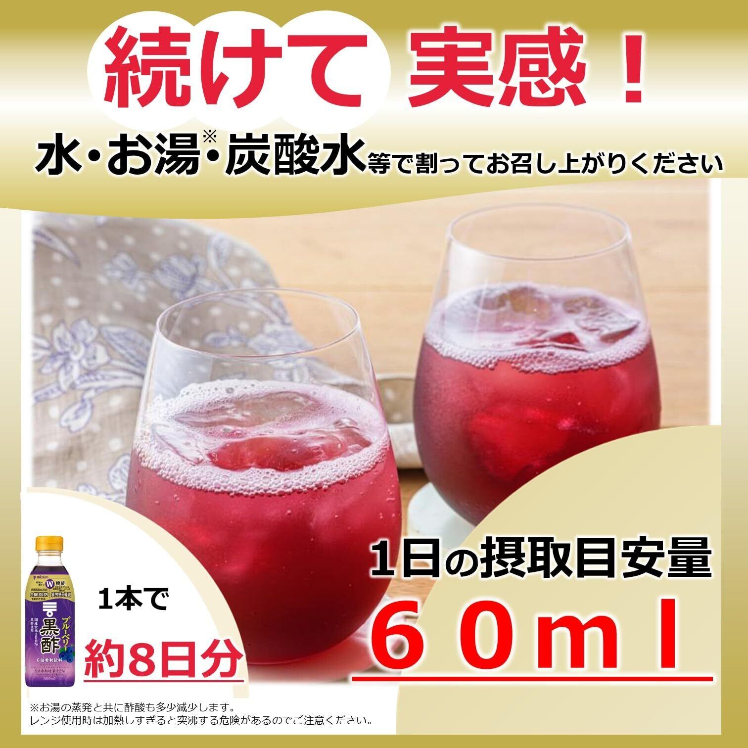 6倍希釈タイプです。本品60ml(希釈後360ml)に食酢(黒酢)の主成分である酢酸750mgを含んでいます。