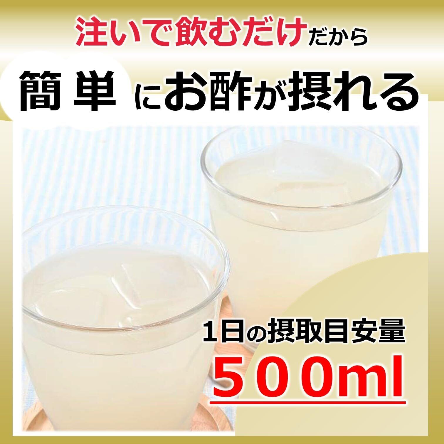 栄養成分:一日摂取目安量(500ml)当たり エネルギー:35kcal、たんぱく質:0g、脂質:0g、炭水化物:9.1g、食塩相当量:0.04g、酢酸:750mg