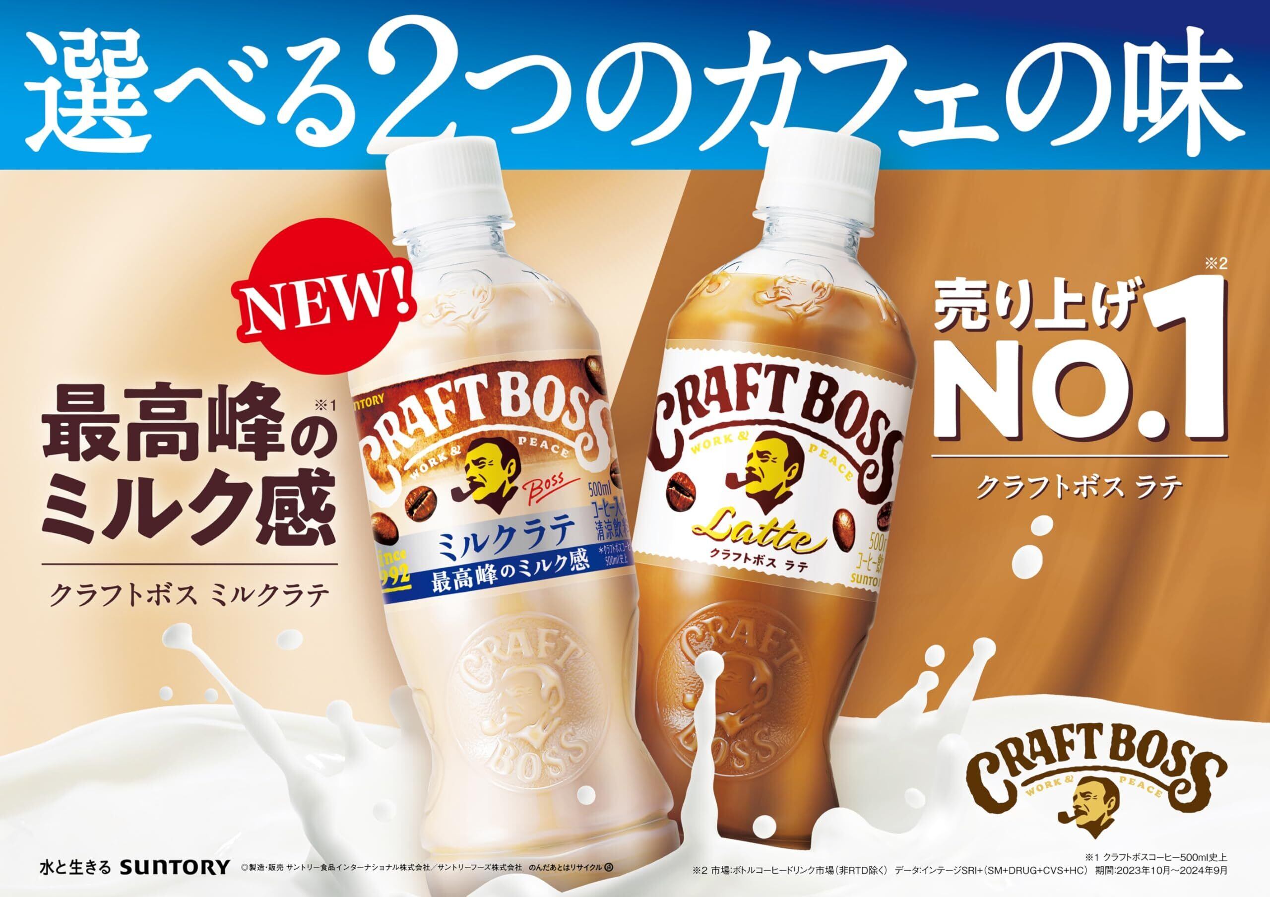 200を超える工程(焙煎、抽出、調合)で手間を惜しまず作ったおいしさのコーヒー、クラフトボス ラテ。BOSSのクラフトマンシップが詰まった新しいラテです。ほどよい甘さで飲みやすい「やさしいコク」が特徴。リキャップ可能なので、ゆっくり味わってお飲み頂けます。パッケージは、正面にクラフトボスのロゴを配置し、本格的なコーヒー感と中味が見えるフレッシュさを表現しました。