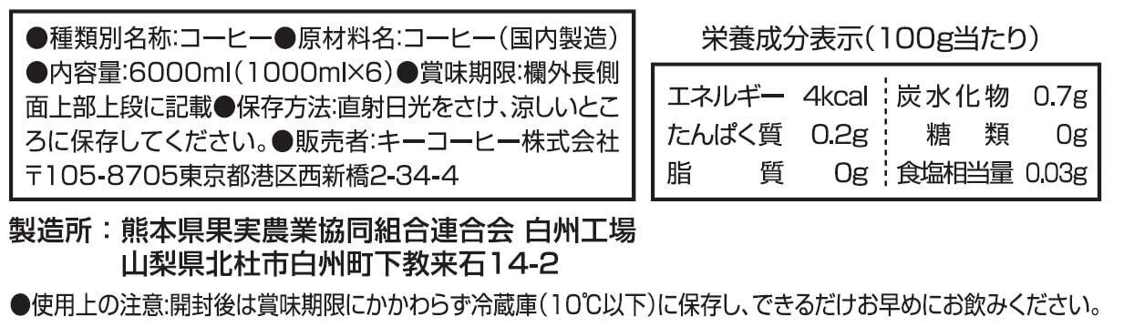 < キーコーヒー KEY DOORS+ リキッドコーヒー 天然水 無糖 テトラプリズマ 1000ml×6本>