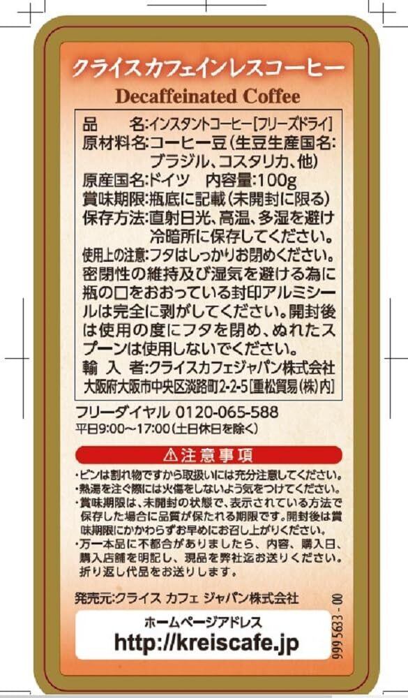 クライス カフェインカットのおいしいコーヒー 100g