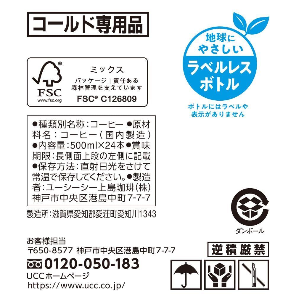 UCC Cold Brew BLACK ラベルレスボトル 500ml×24本【香料無添加】【EC限定品】