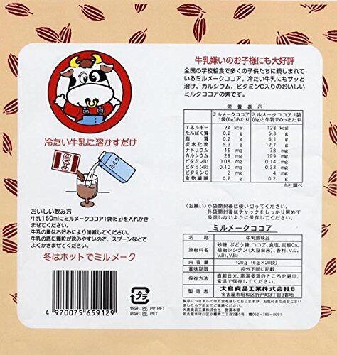 原材料:砂糖、ぶどう糖、ココア、食塩、炭酸Ca、植物レシチン(大豆由来)、香料、V.C、V.B1、V.B2
