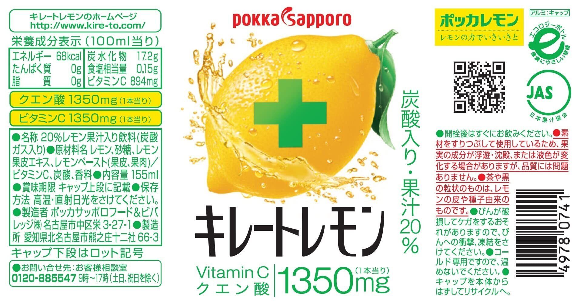 ポッカサッポロ キレートレモン155ml ×24本(6本×4パック)