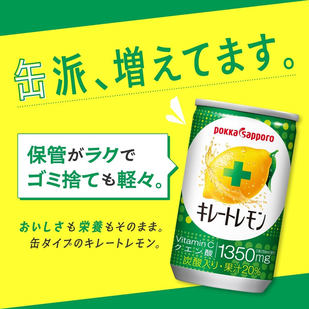 キレートレモンブランドから缶タイプが新登場。30缶入りで1日1本お手軽にレモン摂取はいかがでしょうか。レモン1個分の果汁がギュッと濃縮された、レモン本来の美味しさが楽しめる「瞬間レモン体感飲料」です。 レモンの酸味で飲んだ瞬間リフレッシュでき、前向きな気分に切り替えられる毎日を応援します。