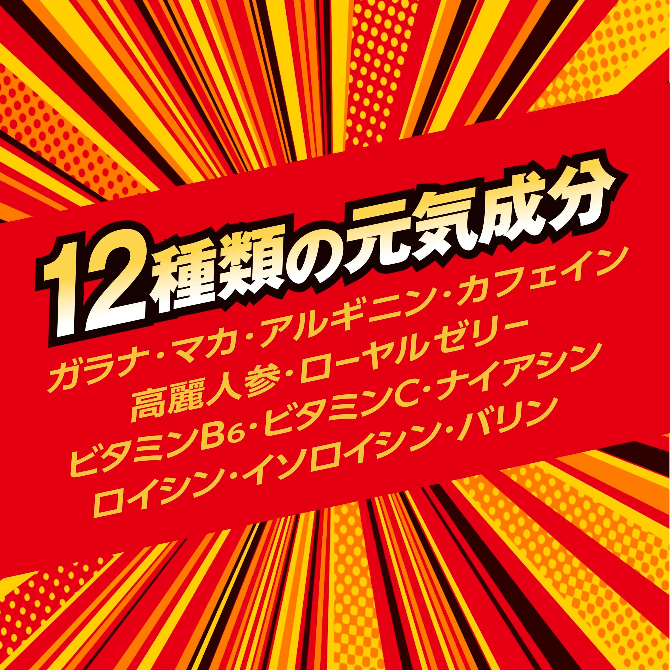 果糖ぶどう糖液糖(国内製造)、食塩、高麗人参エキス、調製ローヤルゼリー、ガラナ、マカ/炭酸、酸味料、香料、V.C、甘味料(アセスルファムK、アスパルテーム・L-フェニルアラニン化合物)、カロテン色素、カフェイン、アルギニン、アラニン、グリシン、ロイシン、ナイアシン、イソロイシン、バリン、V.B6