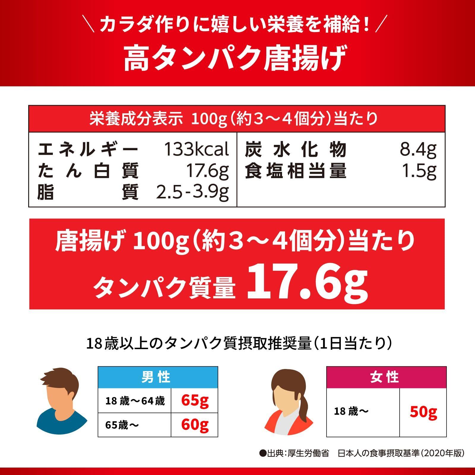 「by PROTEINプロテイン」シリーズに胸肉を使用した唐揚げを発売します。 電子レンジで簡単に高タンパクな唐揚げが出来上がります。日々の生活の中で不足しがちなタンパク質を食事で美味しく補給できます。