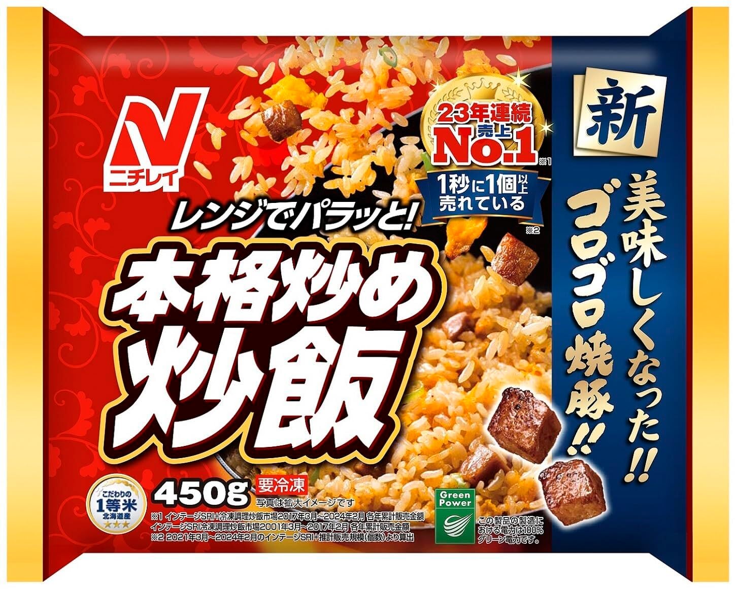 ●焼豚の製造工程を全面刷新しました。従来よりもサイズを10%UPし、表面はより香ばしく、中身はよりジューシーになりました。●進化した新ゴロゴロ焼豚、圧倒的なパラパラ感、自家製香味油の香り立ちが特長の23年連続売上No.1※の「本格炒め炒飯R」です。(※2001年3月~2024年2月の各年累計販売金額)