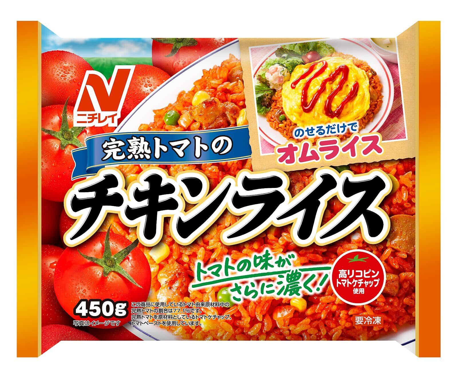 バターを加えてしっとり仕上げた定番のおいしさ、チキンライスです。 大きめでごろごろとした鶏肉も入って、食べごたえも満点! 高リコピントマトケチャップを使用し、トマトの風味がさらに濃厚になりました。そのまま食べるのはもちろん、オムライスにアレンジしても美味しく召し上がれます。