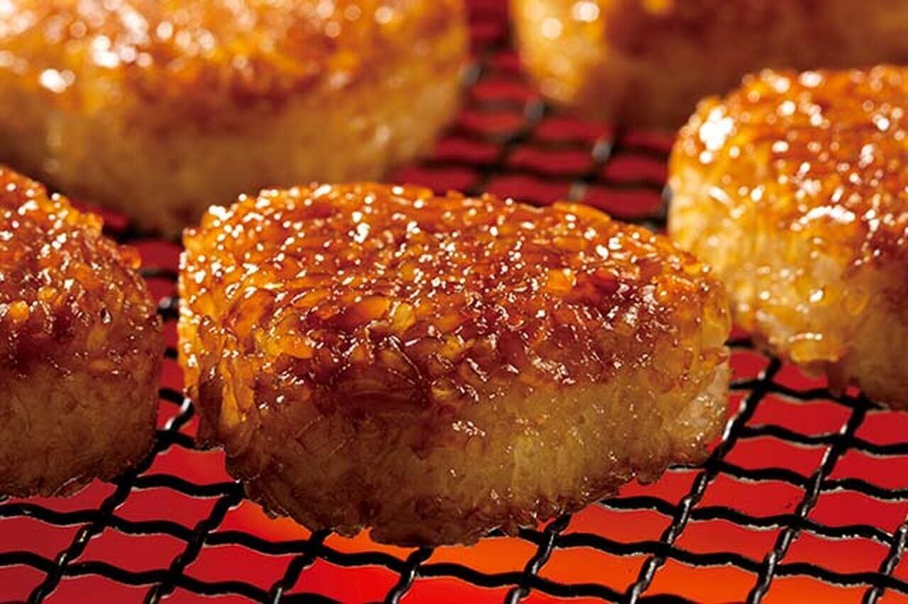 ●ぬって焼いて、ぬって焼いてを繰り返して生まれる醤油のツヤ! 秘伝の醤油たれは、1度目の焼きではさらっとしたたれで香ばしさを、2度目はとろみがあるたれで甘味やまろやかさをUP。 焼き上げた後の香りが違います!●中はふっくら、何個でも食べられる小さいサイズの焼おにぎりです。●規格を見直しました。
