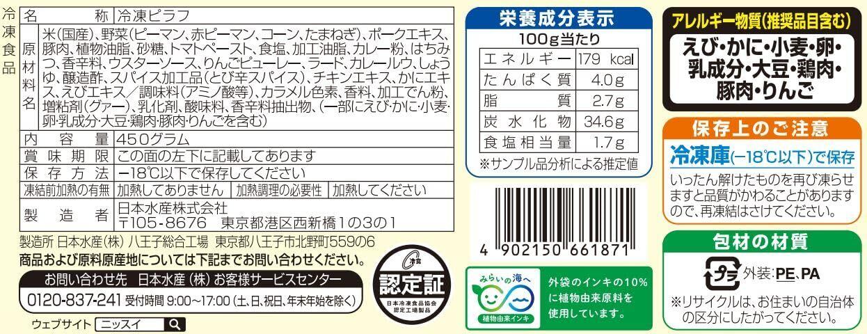 [冷凍] ニッスイ CoCo壱番屋監修カレーピラフ450g×6