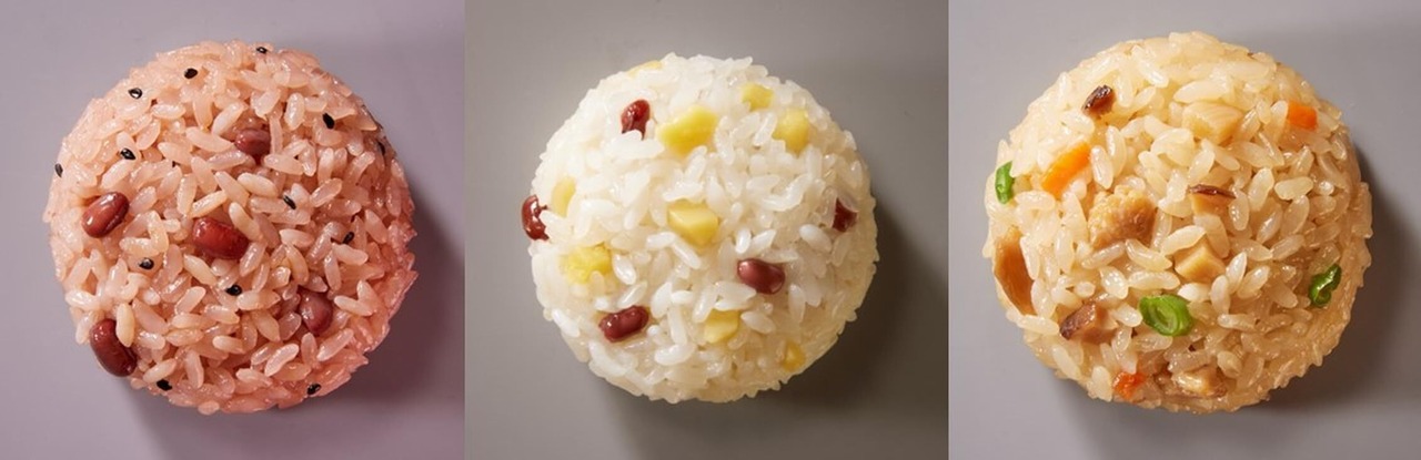 栗おこわ〔米(もち米(国産)、うるち米)、くり甘露煮、あずき、みりん、食塩、加工油脂、米粉/増粘剤(加工でん粉)、酸化防止剤(ビタミンC)、着色料(カロチノイド)〕、\n赤飯おこわ〔米(もち米(国産)、うるち米)、あずき抽出液、あずき、みりん、食塩、ごま、加工油脂、米粉/増粘剤(加工でん粉)、(一部にごまを含む)〕、\n鶏五目おこわ〔米(もち米(国産)、うるち米)、野菜(にんじん、いんげん、たけのこ)、鶏肉、しょうゆ、まいたけ、しいたけ、発酵調味料、砂糖、かつおぶし調味エキス、みりん、かつおだし、かつおぶしエキス、チキンミートペースト、食塩、こんぶエキス、加工油脂、米粉/調味料(アミノ酸等)、増粘剤(加工でん粉)、(一部に小麦・大豆・鶏肉を含む)〕
