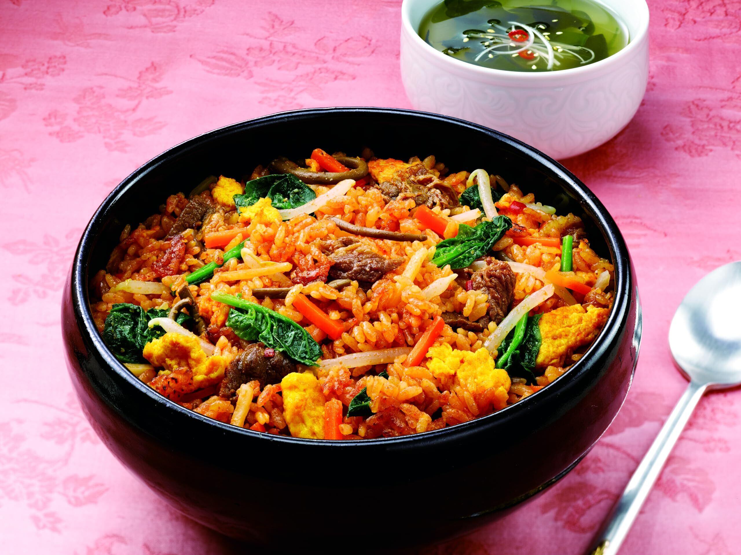 米(国産)、野菜(もやし、ほうれん草、にんじん)、大麦、液卵、牛肉、植物油脂(なたね油、ごま油、大豆油)、砂糖、コチュジャン、しょうゆ、ビビンバシーズニング、食塩、発酵調味料、アミノ酸液、おろしにんにく、ビーフエキス調味料、いりごま、トウチジャン、トウバンジャン、ヤンニンジャン、いため油(なたね油)/調味料(アミノ酸等)、乳化剤、安定剤(加工でん粉)、炭酸水素Na、加工でん粉、着色料(カラメル、カロチノイド)、香料、酸味料、香辛料抽出物、(一部に小麦・卵・乳成分・牛肉・ごま・大豆・鶏肉・豚肉・りんご・魚醤(魚介類)を含む)
