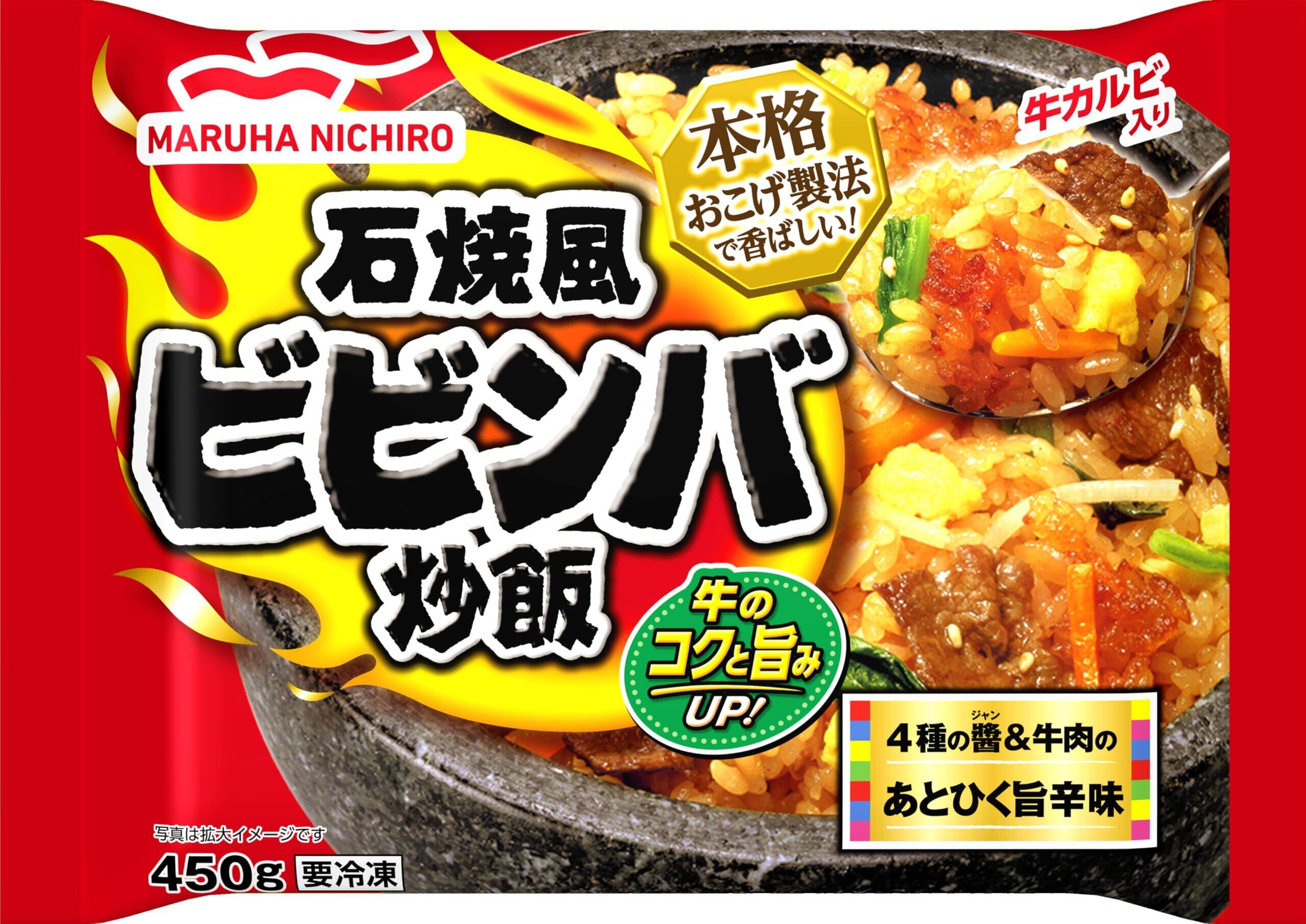 "マルハニチロの冷凍食品の商品です。おこげの香ばしさと、特製だれに漬こんだ牛カルビが楽しめる石焼風ビビンバ炒飯です。本格的な味付けですので、お家で本格韓国料理を召し上がる事ができます。電子レンジ調理ですぐに食べることができますので、食べたい時にすぐに食べることが可能です!電子レンジ調理でふっくら仕上げても、フライパン調理でパラっと香ばしく仕上げてもおすすめです。1品で非常にボリュームがある、おなかいっぱいになる商品です。 "