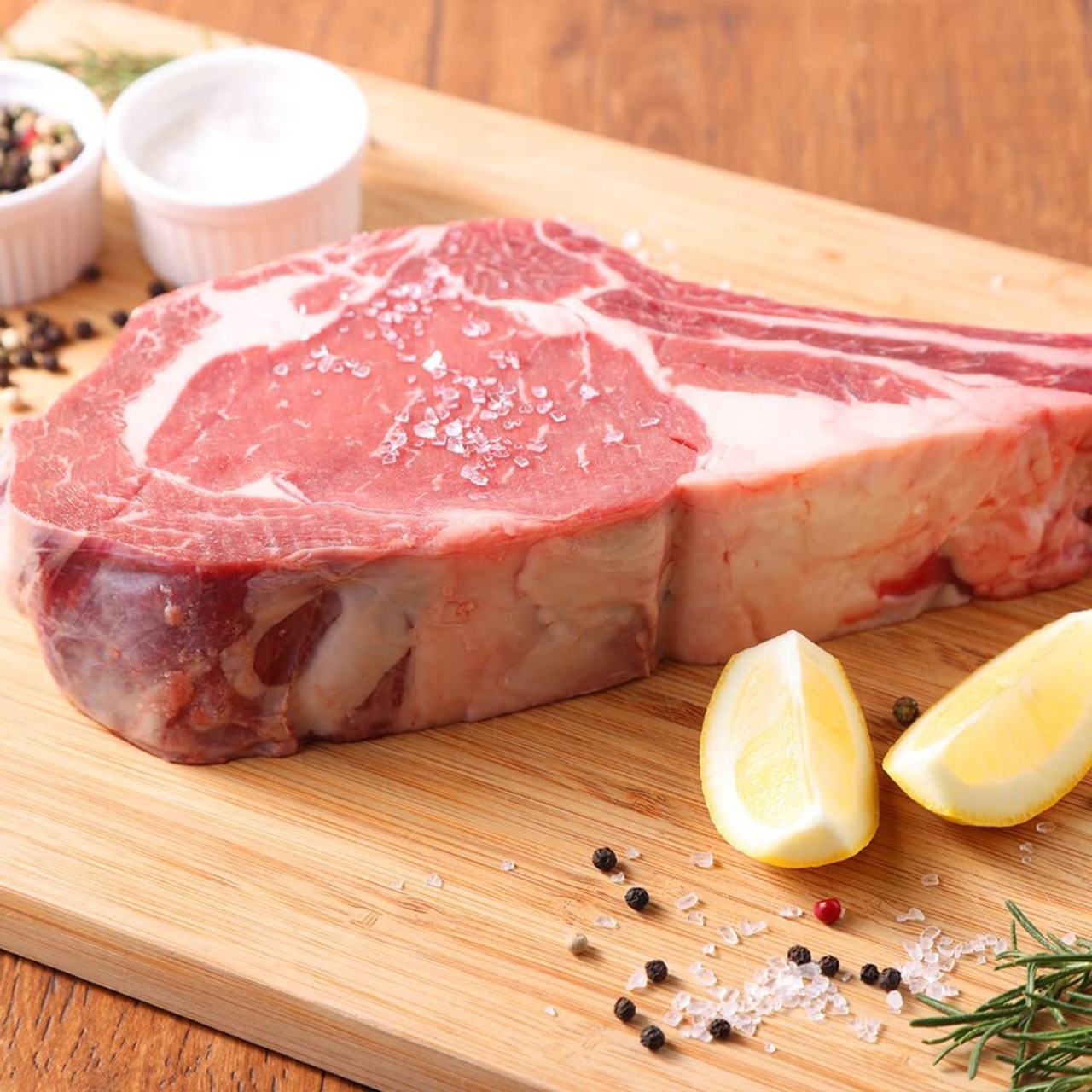加茂川 トマホークステーキ 1本 (約1kg) 肉 ステーキ肉 骨付き肉 tomahawk steak リブアイ かたまり肉 バーベキュー マンガ肉 キャンプ アウトドア 塊肉 冷凍