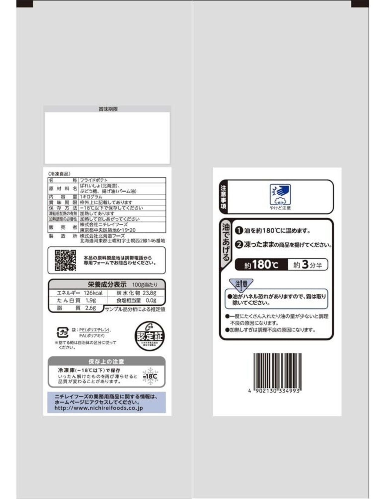 ばれいしょ(北海道)、ぶどう糖、揚げ油(パーム油)