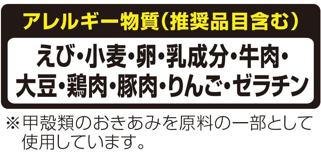 えび・小麦・卵・乳成分・牛肉・大豆・鶏肉・豚肉・りんご・ゼラチンを含む
