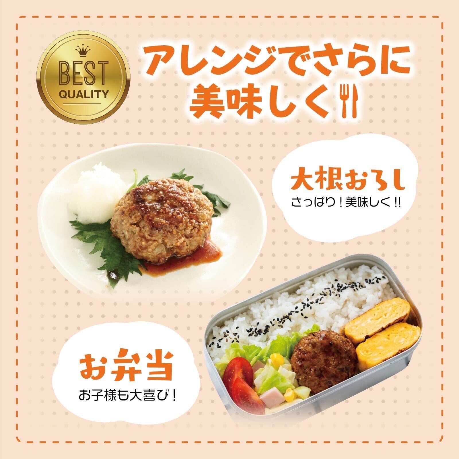 【調理方法】電子レンジでラップをかけず冷凍のまま1個約3分(500W)味付けハンバーグなので そのままで召し上がれます。お好みでおろしポン酢やデミグラスソースをかけても美味しいです。