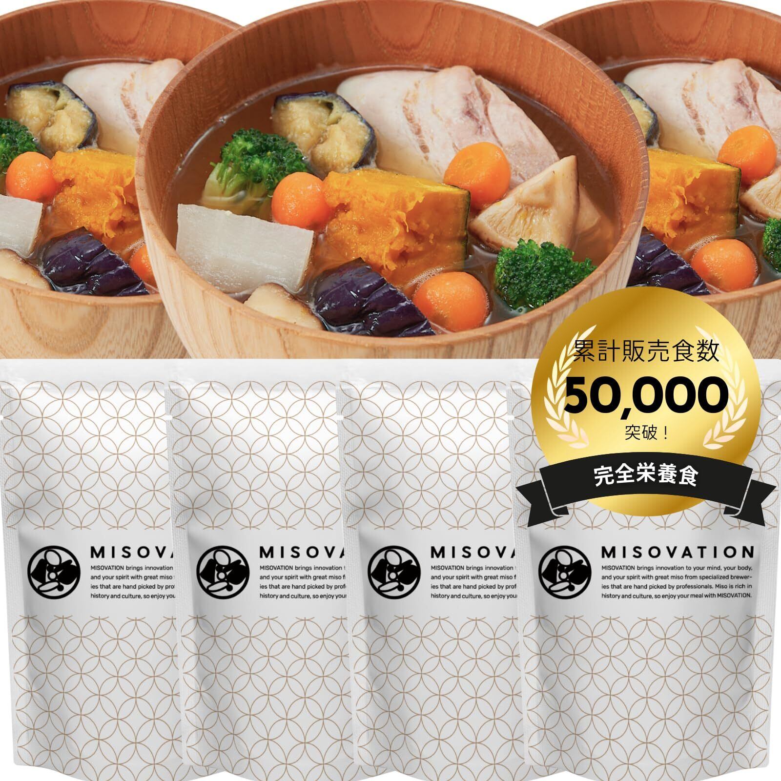 ✨累計販売数50,000食を突破!:手軽でおいしい栄養満点の置き換え食として、忙しい中でも「食」を大切にしたい方にMISOVATIONが選ばれています。