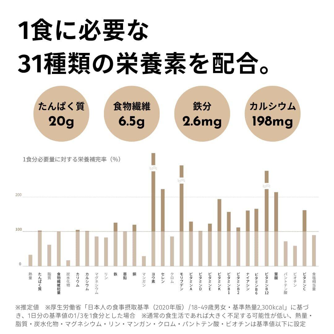 ✨「ダイエット」「体調管理」「腸活」に嬉しい31種類の栄養素を配合:1杯でなんとたんぱく質20g。そのほか、食物繊維6.5g、鉄分やカルシウムをはじめとするビタミン・ミネラル25種類など、ダイエット・美容・体調管理に嬉しい31種類の栄養素が摂取可能です。
