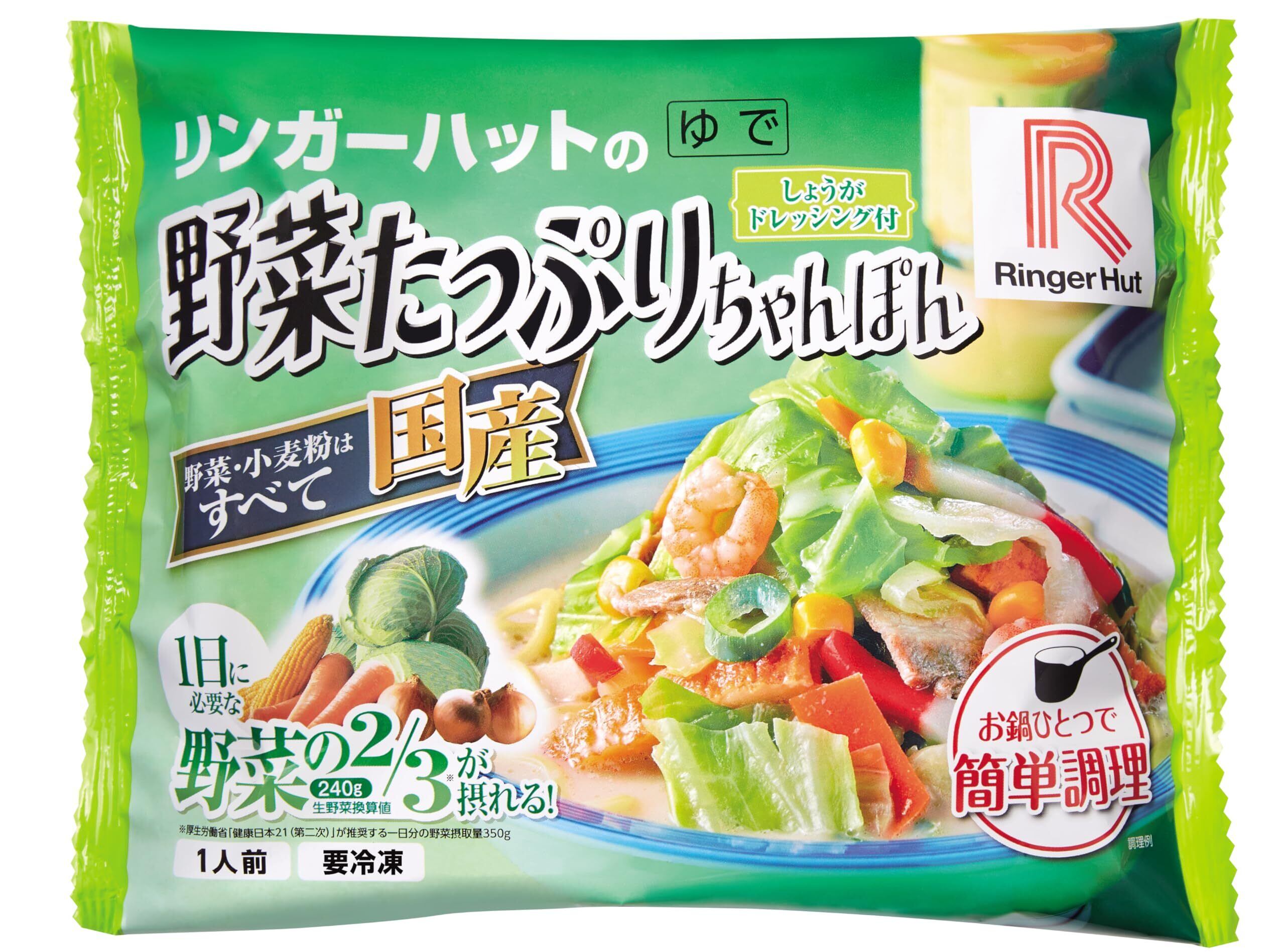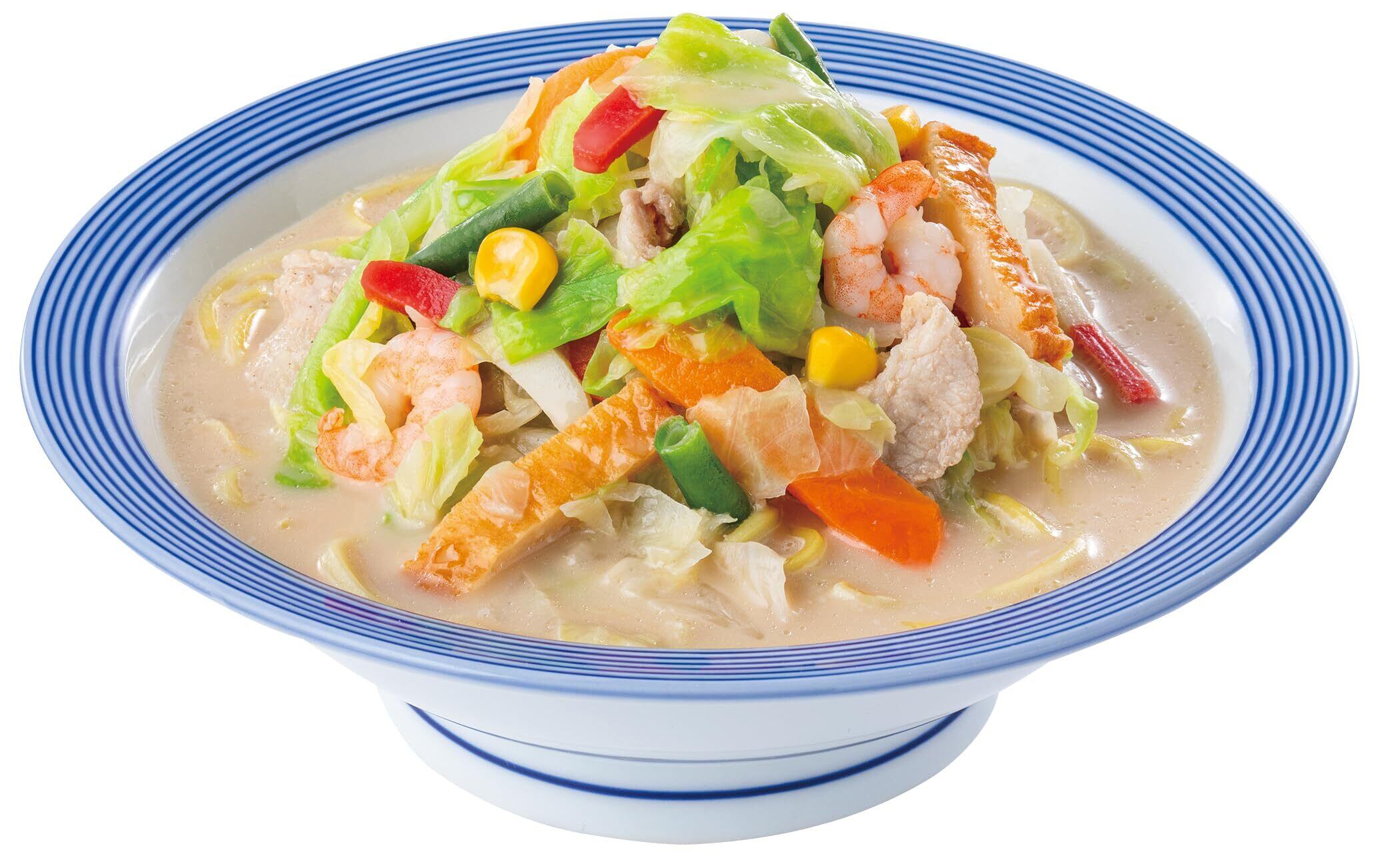 野菜たっぷりちゃんぽんは、長崎ちゃんぽんの1.6倍の具材が入って「1食で野菜の摂取量が1日の2/3摂れ」野菜不足・健康を気にされている方へおすすめしており、及び食べ応え満点です。別添付属の生姜ドレッシングを加えるとあっさりとした味が味わえ、1食で2度の味を堪能でき、最後まで楽しめる一品です。