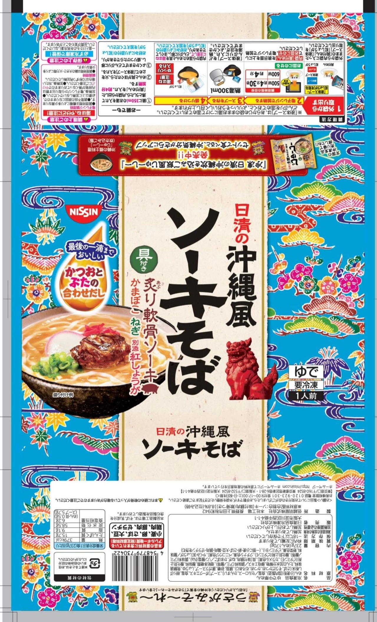 かつおだしの華やかな香り立ちと、奥深くあと引く豚の旨みが特長の、すっきりとした味わいのスープです。麺は表面のつるみを抑えた、ソーキそば特有の食感を再現したこだわりの平打ち麺を使用しています。具材には直火で炙った香ばしいジューシーな軟骨ソーキ、ねぎ、かまぼこを合わせました。別添の紅しょうがパックが付いています。軟骨ソーキは他の冷凍食品では味わえない本格的な具材です。是非この機会に沖縄気分が味わえる一杯をご賞味ください。