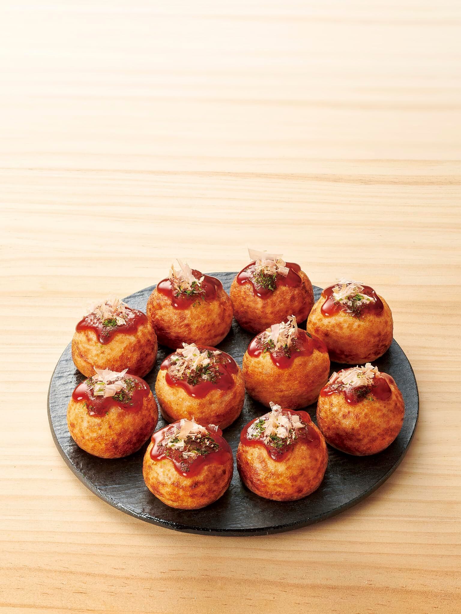 ふっくらとろーり、紅生姜の風味が効いた、まーるいたこ焼きです。