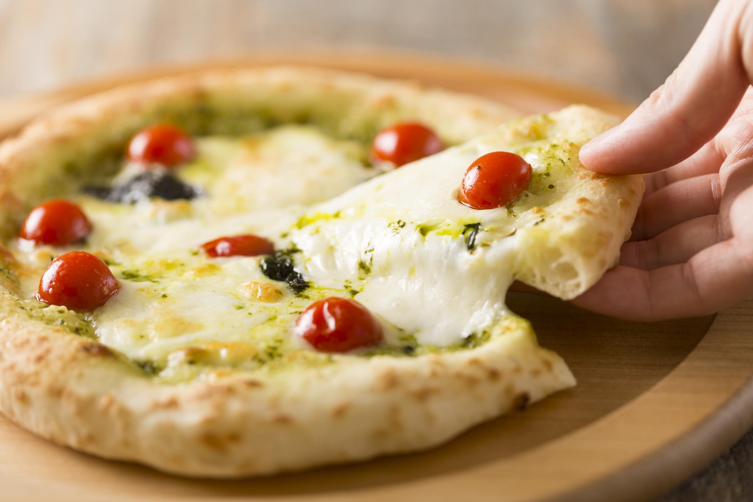爽やかなバジルの香りとクリーミーな味わいがある特製ジェノベーゼソースと程よい酸味のチェリートマトでチーズと混ざり合ってとびきりのハーモニー。