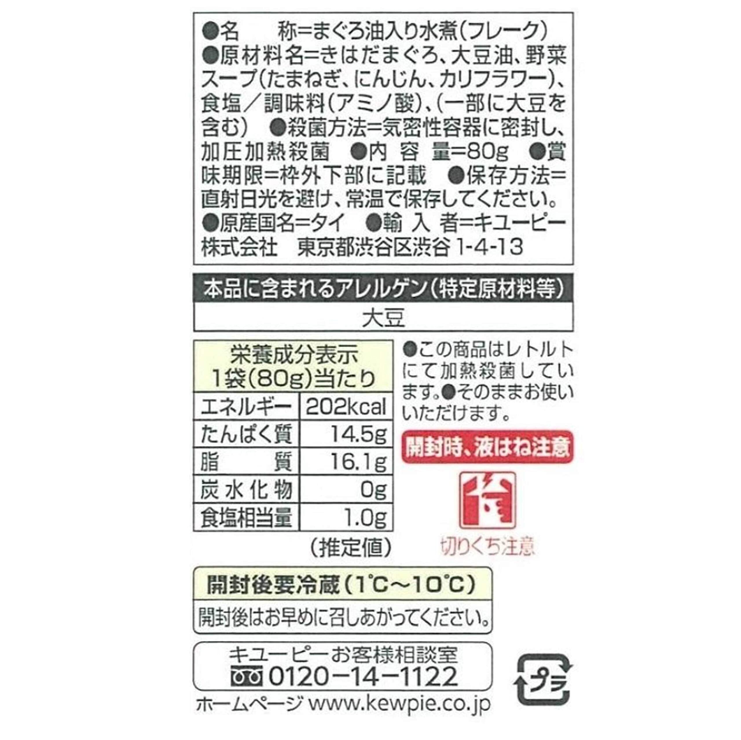 きはだまぐろ、大豆油、野菜スープ、食塩、調味料(アミノ酸)