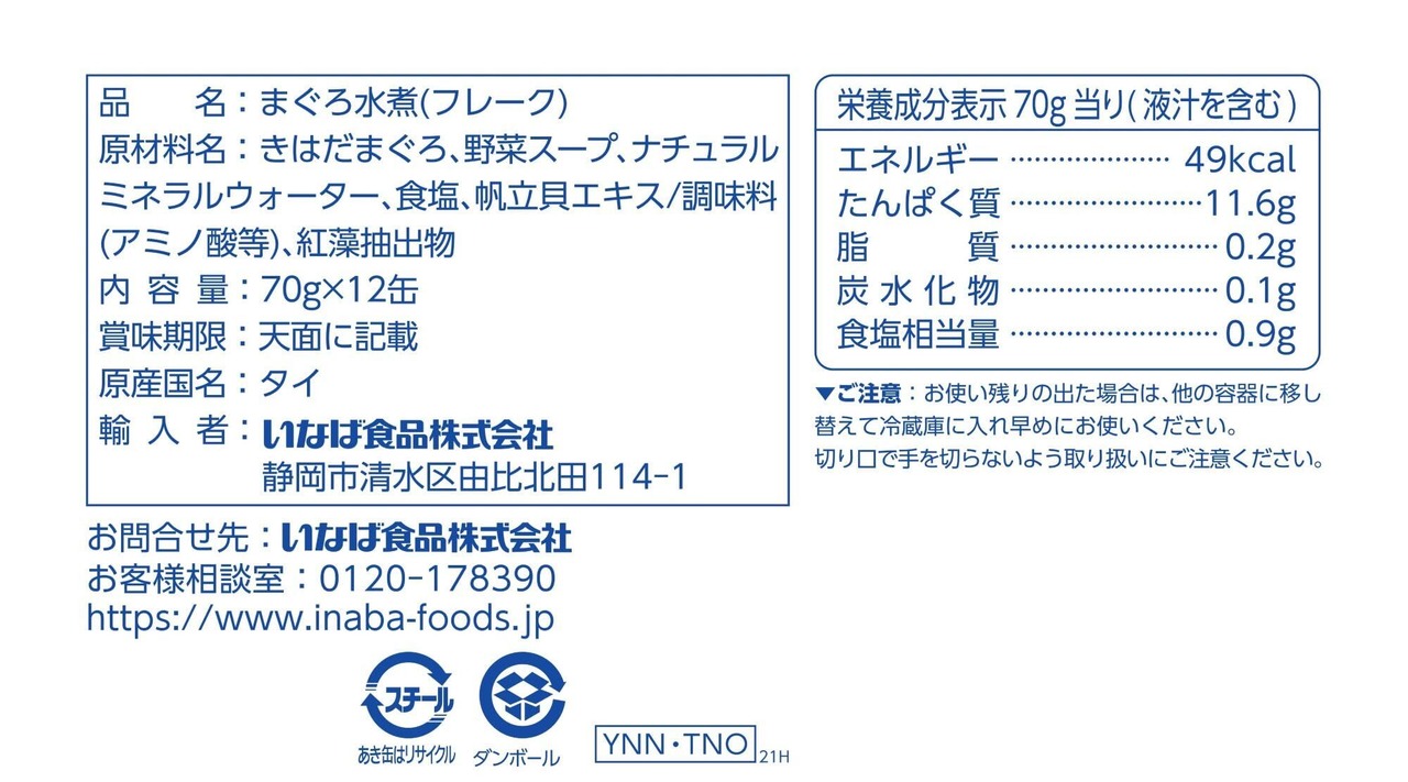 いなば食品 いなば ライトツナスーパーノンオイル フレーク 70g×12缶入