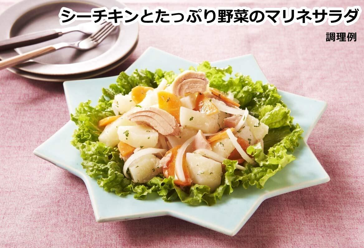 きはだまぐろをチャンク状にし、野菜スープで調味したオイル無添加タイプのシーチキン