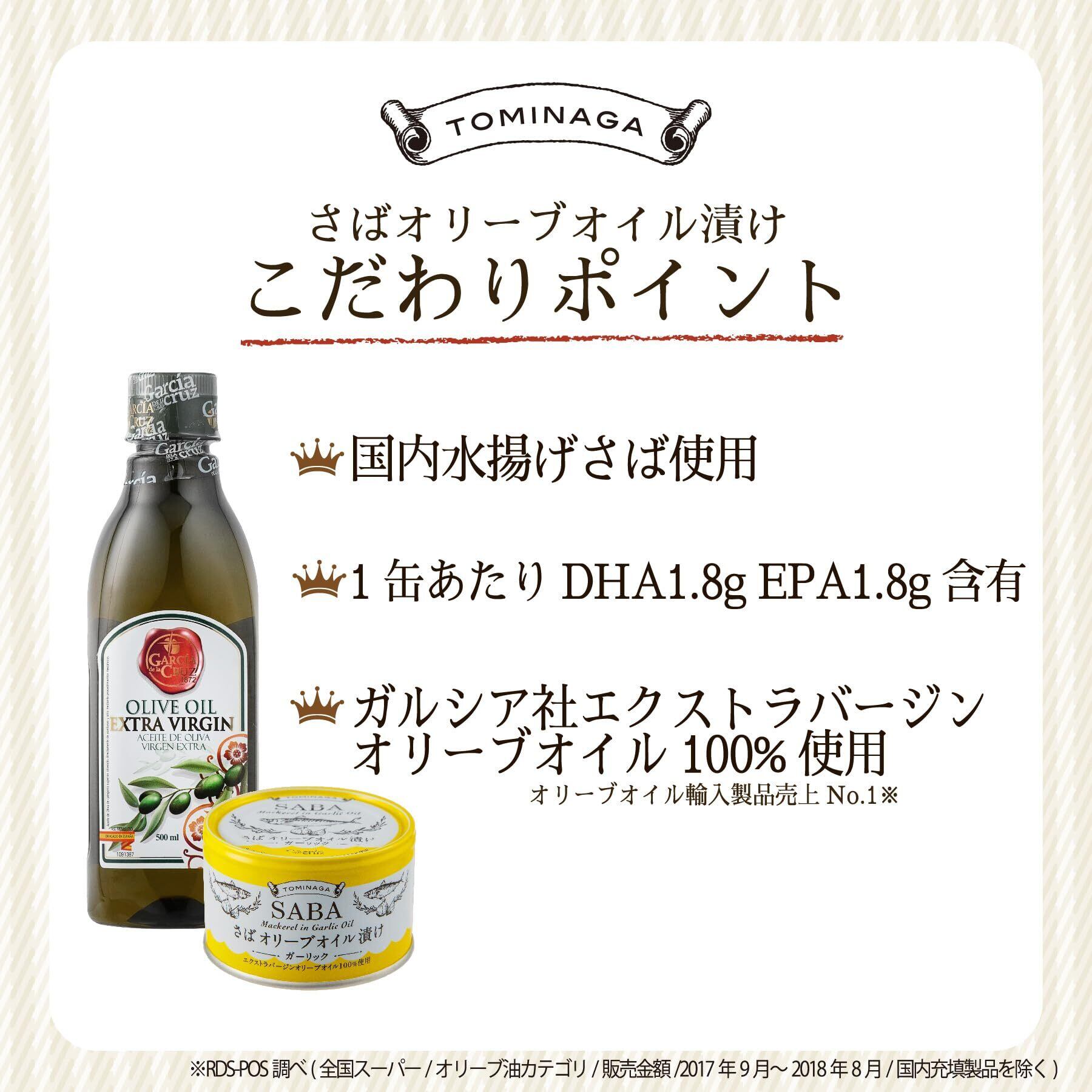 トミナガ 国産 さば 缶詰 オリーブオイル 漬け ガーリック 150g パスタ サラダ アヒージョ にも エクストラバージンオリーブオイル使用 DHA EPA 含有 サバ缶 防災 非常食 保存食