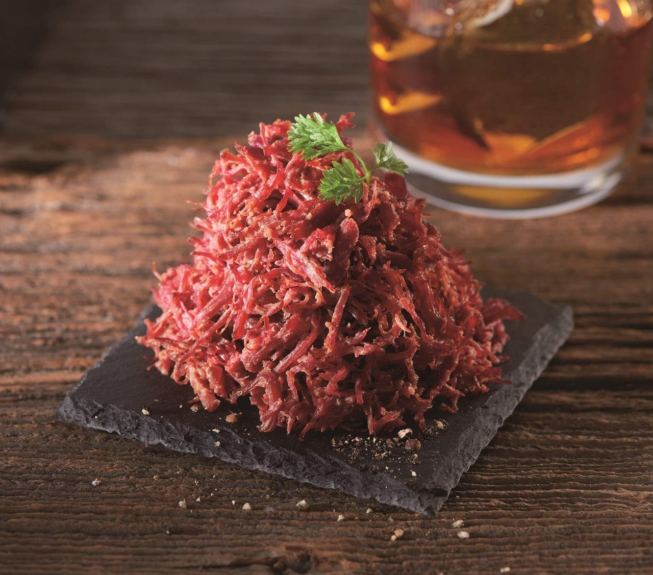 粗くほぐした牛肉の旨味とほのかな燻製の香りが広がります。