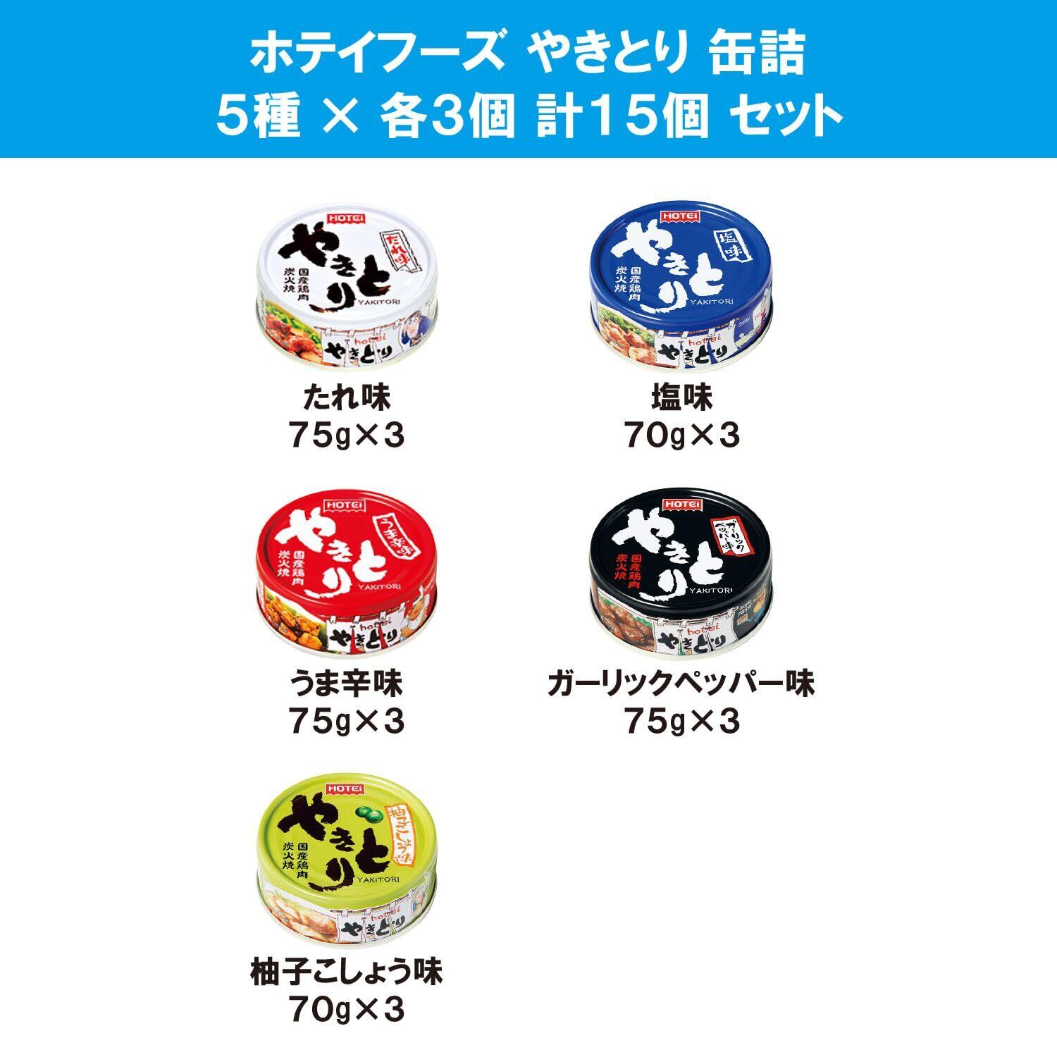 ホテイ フーズ やきとり 缶詰 5種 ×各3個 計15個 セットです。