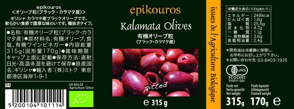 エピクロス 有機オリーブ粒 ブラック・カラマタ【ギリシャ産】【種無し】 315g