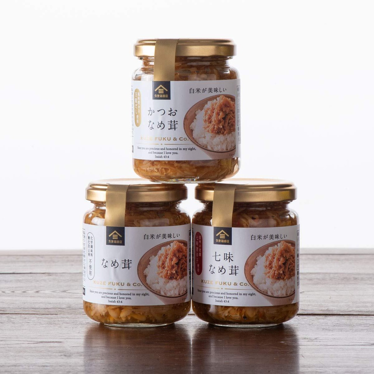 【久世福商店】白米が美味しい!久世福なめ茸3種まとめ買い (TV番組:バゲットで紹介された 七味なめ茸入り)【のし・ラッピング・化粧箱詰め不可】