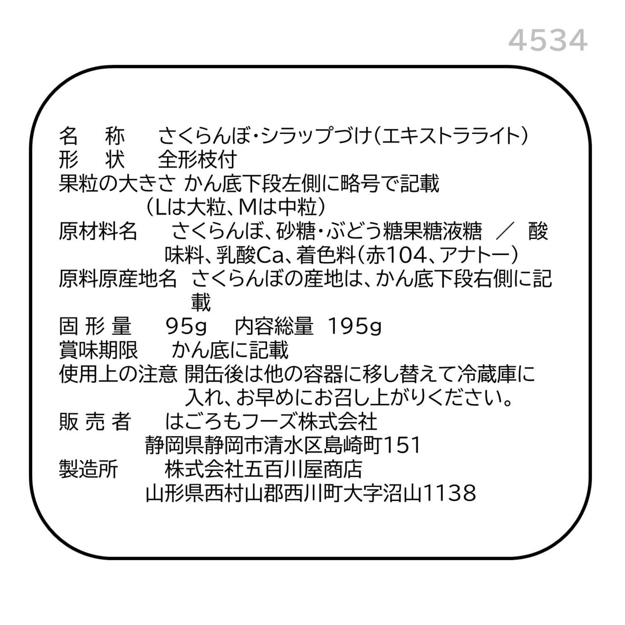 原材料:さくらんぼ、砂糖・ぶどう糖果糖液糖 / 酸味料、着色料(アナトー、赤104)、乳酸カルシウム