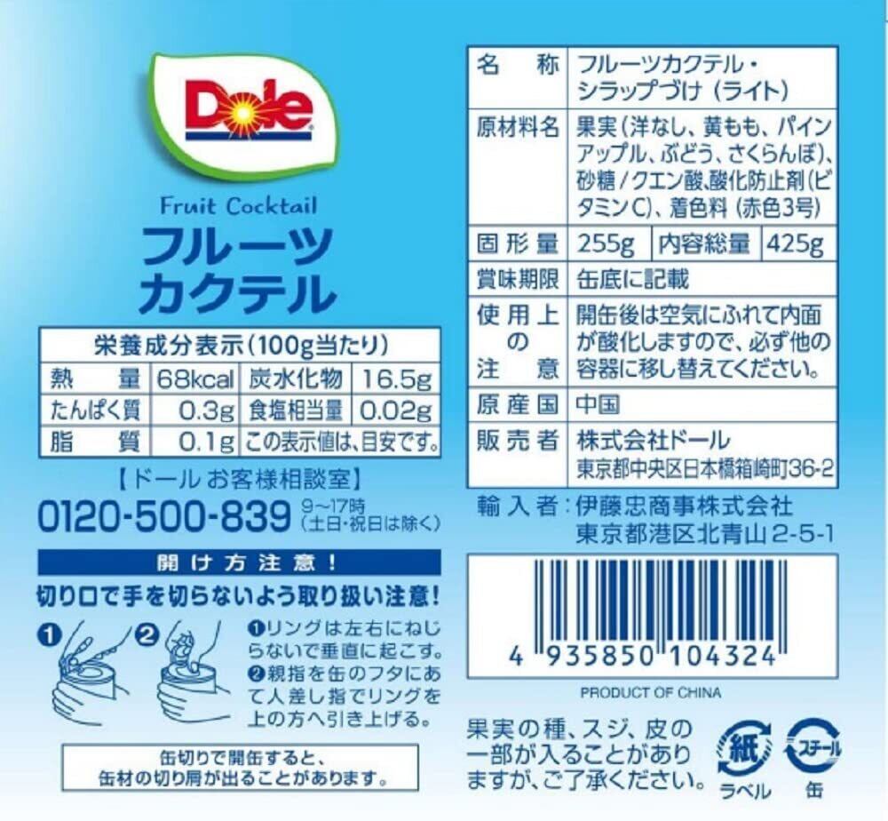ドール 缶詰 フルーツカクテル 425gx6個 Dole