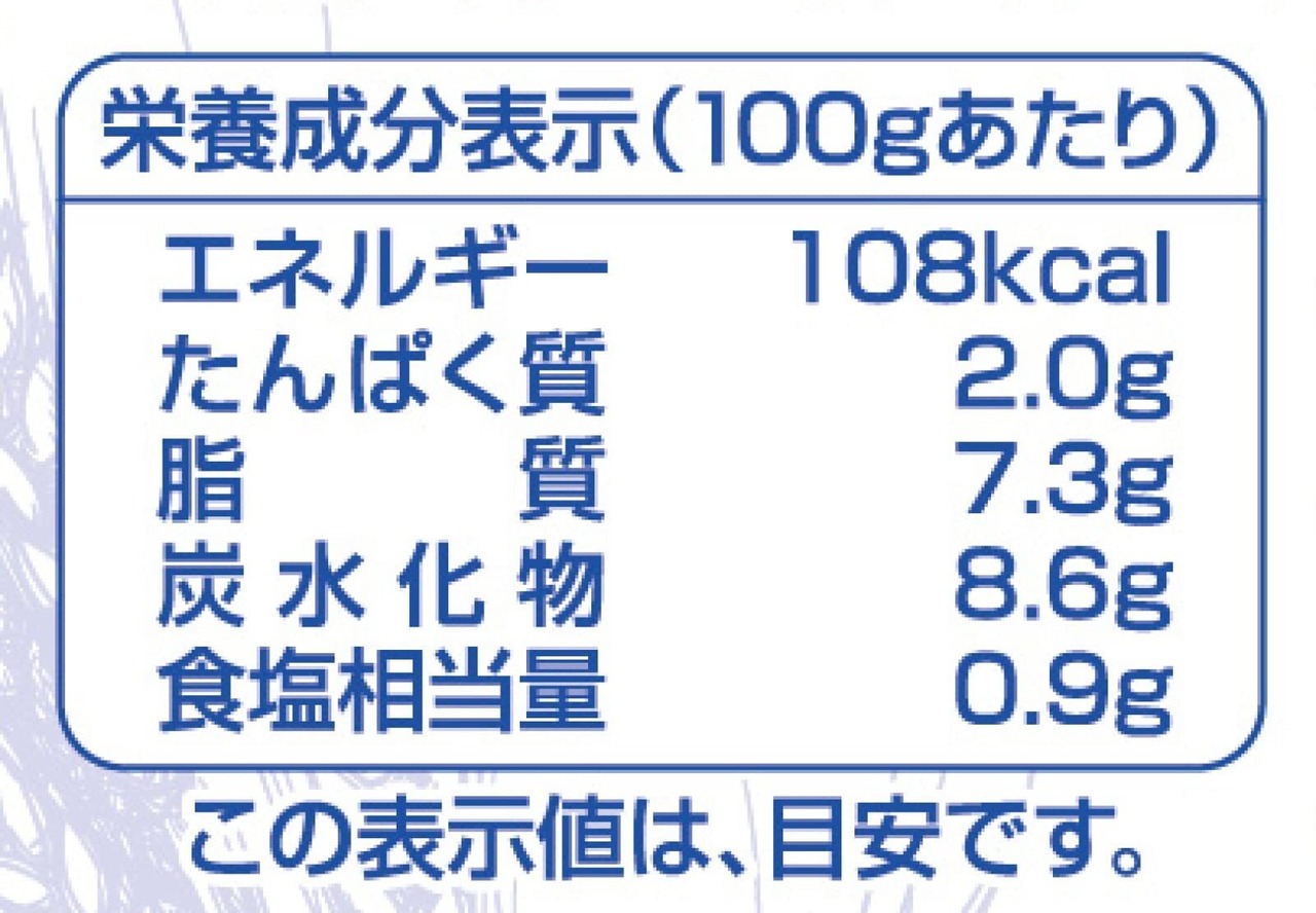 調製豆乳(国内製造)、小麦粉、ショートニング、還元水あめ、食塩、砂糖、昆布エキス、酵母エキスパウダー、香辛料/増粘剤(加工デンプン)、乳化剤、香辛料抽出物、(一部に小麦・大豆を含む)