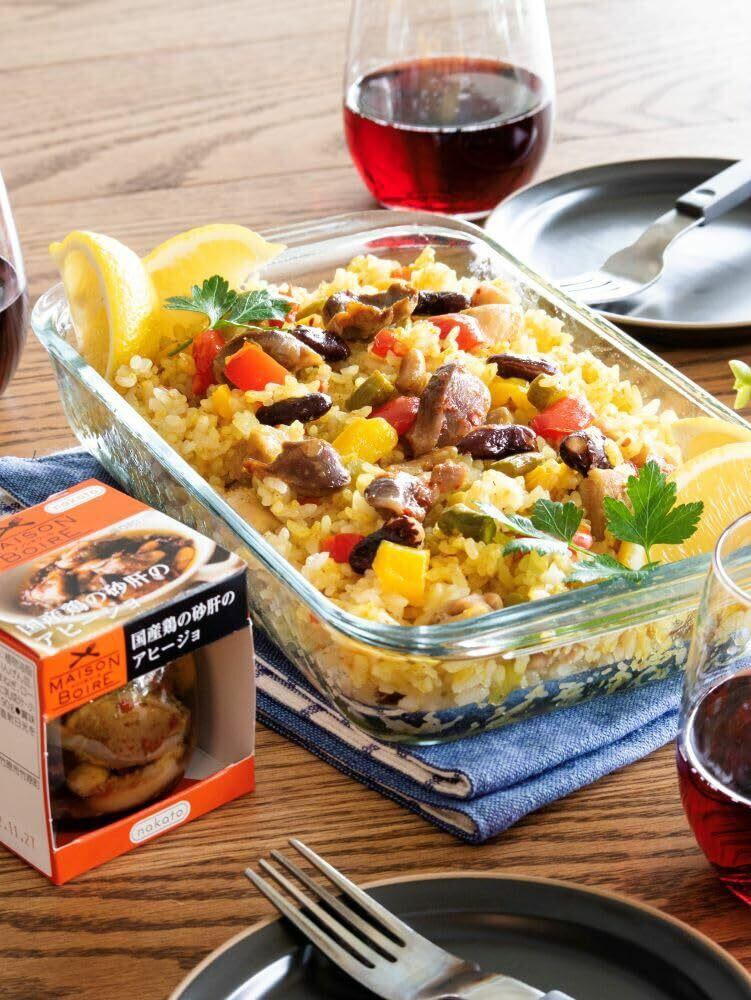 【 国産鶏の砂肝のアヒージョ 】 植物油脂(国内製造、スペイン製造)、砂肝、赤いんげん豆、白いんげん豆、食塩、香辛料、乾燥たまねぎ、ローストガーリック/香辛料抽出物、(一部に乳成分・小麦・大豆・鶏肉・豚肉を含む)【 国産鶏レバーのパテ 】 鶏レバー(国産)、たまねぎ、鶏肉、植物油脂、夏みかん果汁、ミルポワ、卵黄、夏みかん果皮、食塩、ブランデー、砂糖、卵黄油、酵母エキスパウダー、香辛料/増粘剤(加工でん粉、キサンタンガム)、調味料(アミノ酸)、(一部に卵・大豆・鶏肉を含む)