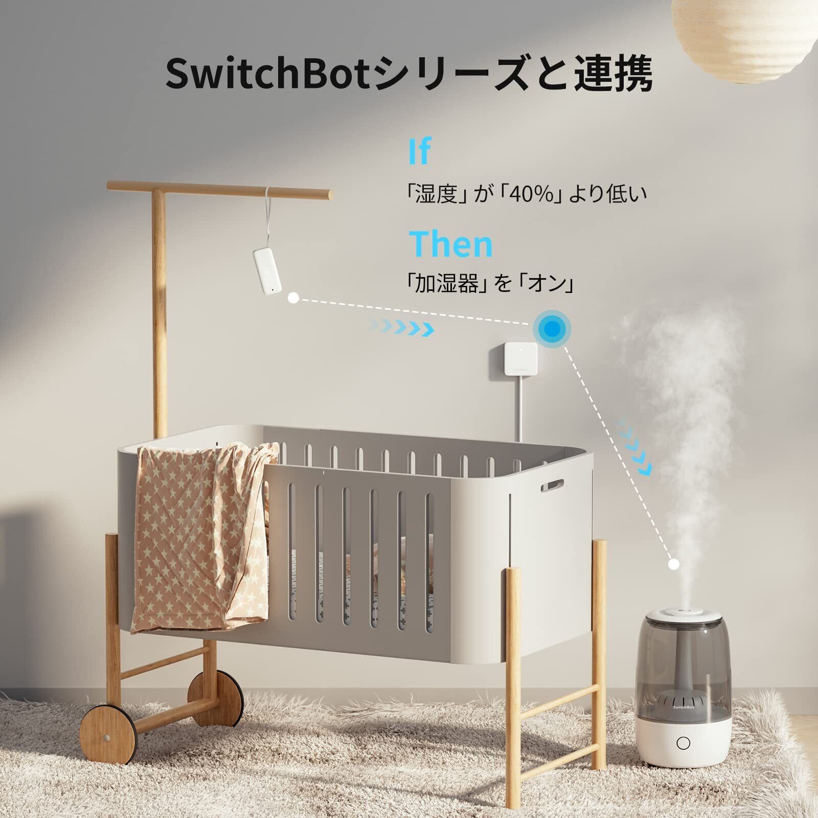 【遠隔確認 & 温湿度異常アラー通知機能】SwitchBotハブミニ/ハブ2と併用すれば、旅行中でもお家の温湿度環境を確認できます。また、温度、湿度、露点温度、VPD(飽和水蒸気圧)、絶対湿度が予め設定した値以上または以下になった場合はアプリでアラート通知を受け取ることができます。