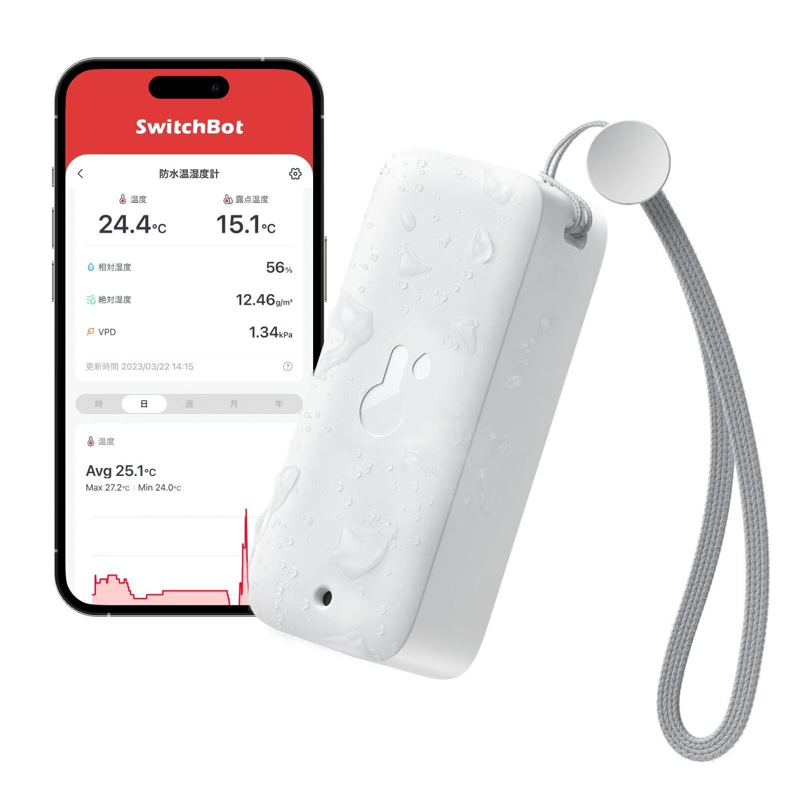 【熱中症対策】SwitchBot 防水温湿度計 Alexa 温度計 湿度計 - スイッチボット ワイヤレス 室内 屋外用 温湿度計 スマホで温度湿度管理 デジタル 高精度 コンパクト 温度 湿度 絶対湿度 異常通知 グラフ記録 スマートホーム Alexa Google Home IFTTT イフト Siriに対応(ハブ必要)