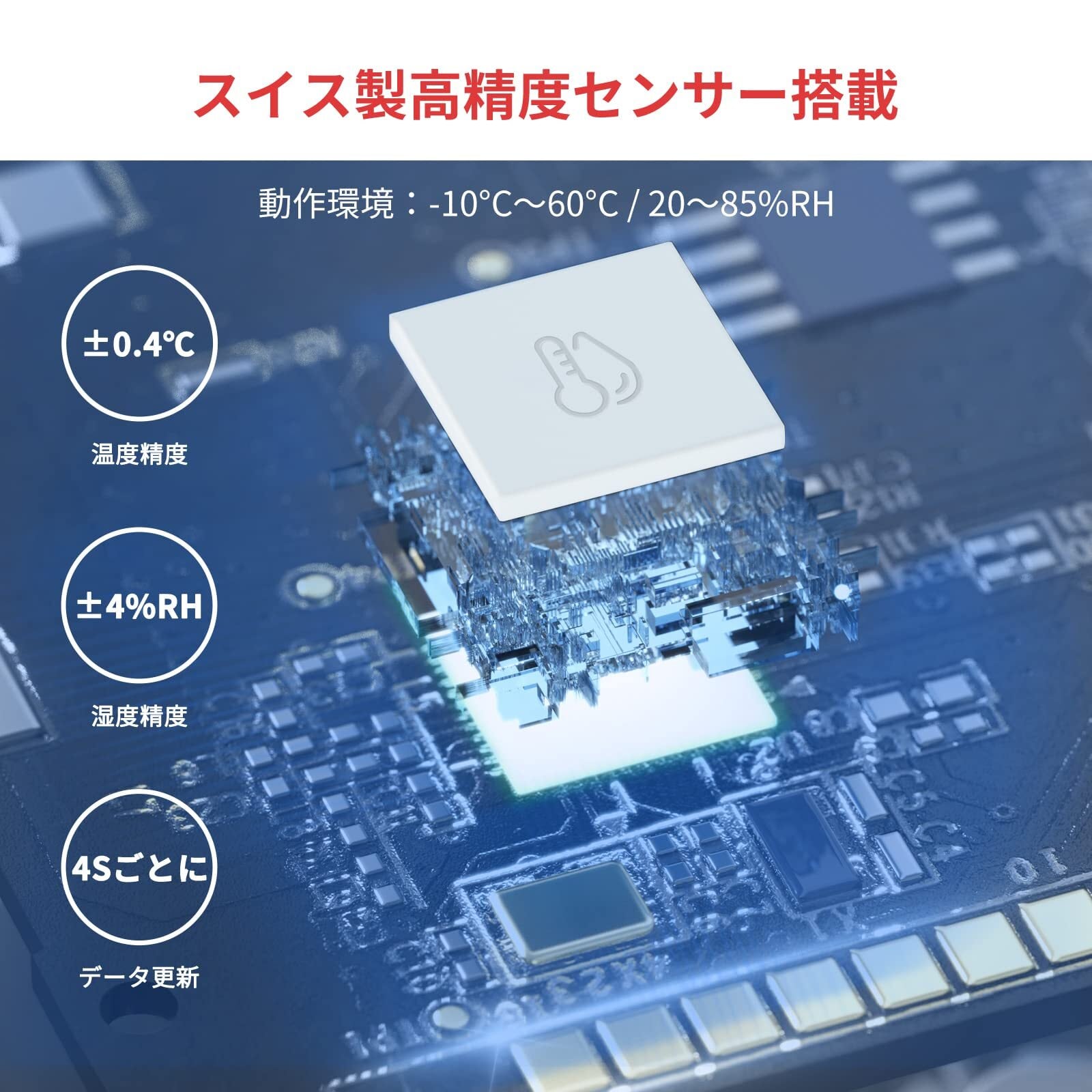 【スイス製高精度センサー搭載】高精度で信頼性の高い温湿度測定を実現し、より正確な温度や湿度を管理可能。温度・湿度のデータは4秒ごとに取得し、感度と精度の両方とも優れています。液晶パネルを採用し、コンパクトでも視認性が高いです。温度・湿度のほか、電池残量にも表示されます。