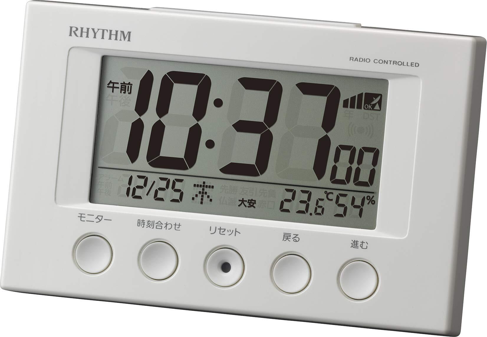 リズム(RHYTHM) 目覚まし時計 電波時計 温度計・湿度計付き フィットウェーブスマート 白 7.7×12×5.4cm 8RZ166SR03