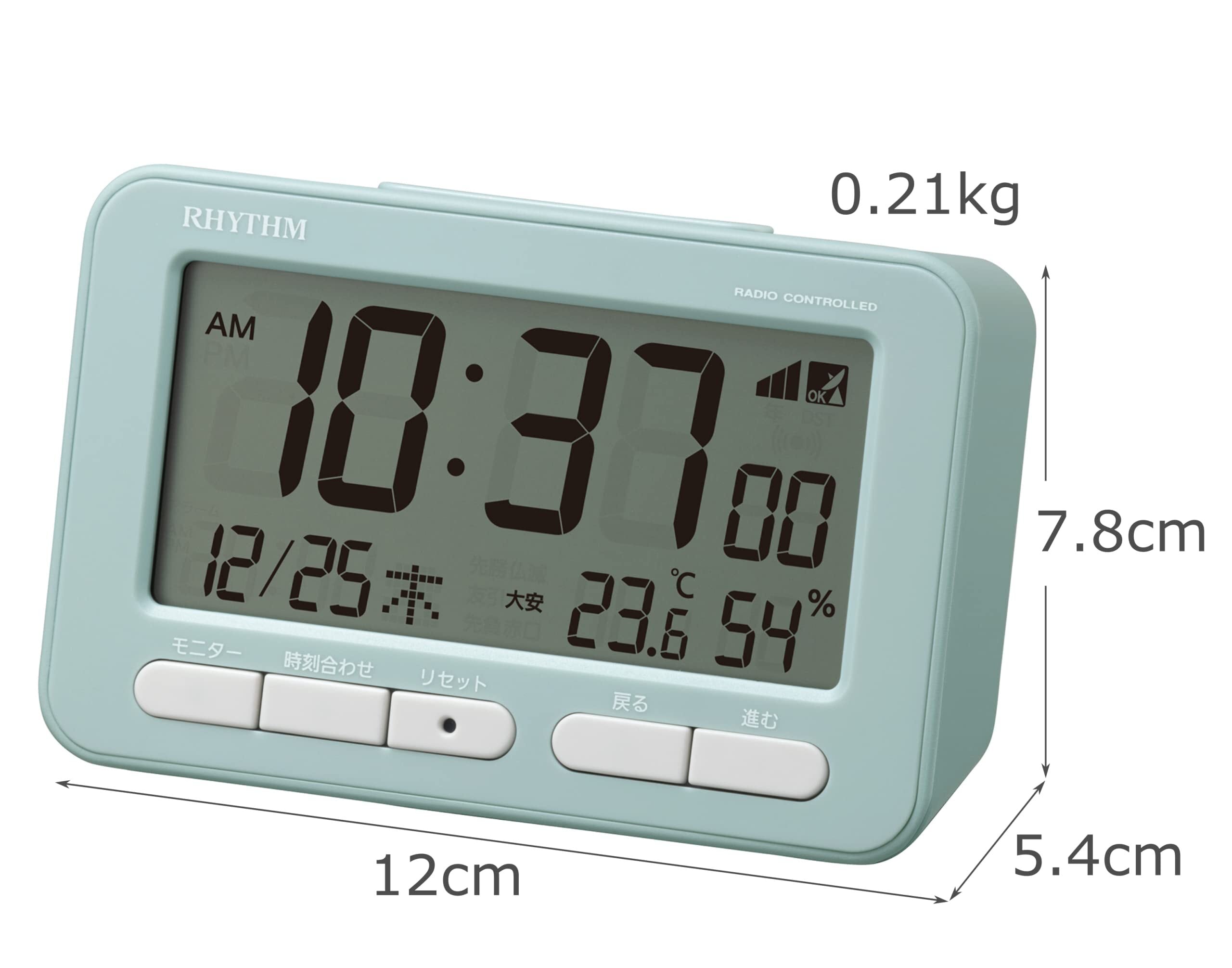 リズム(RHYTHM) 目覚まし時計 電波時計 電子音 アラーム (スヌーズ 付) 温度計 湿度計 カレンダー ブルー 7.8×12×5.4cm フィットウェーブ D234 8RZ234SR04