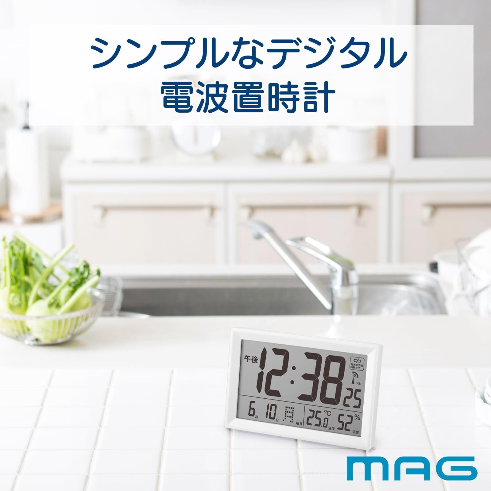 MAG(マグ) 置き時計 デジタル 電波時計 温度計 湿度計 温湿度計 シンプル インテリア リビング カウンター 置き掛け兼用 縦約9.0×横約14㎝ ホワイト ビュースクエア W-812A WH-Z ノア精密