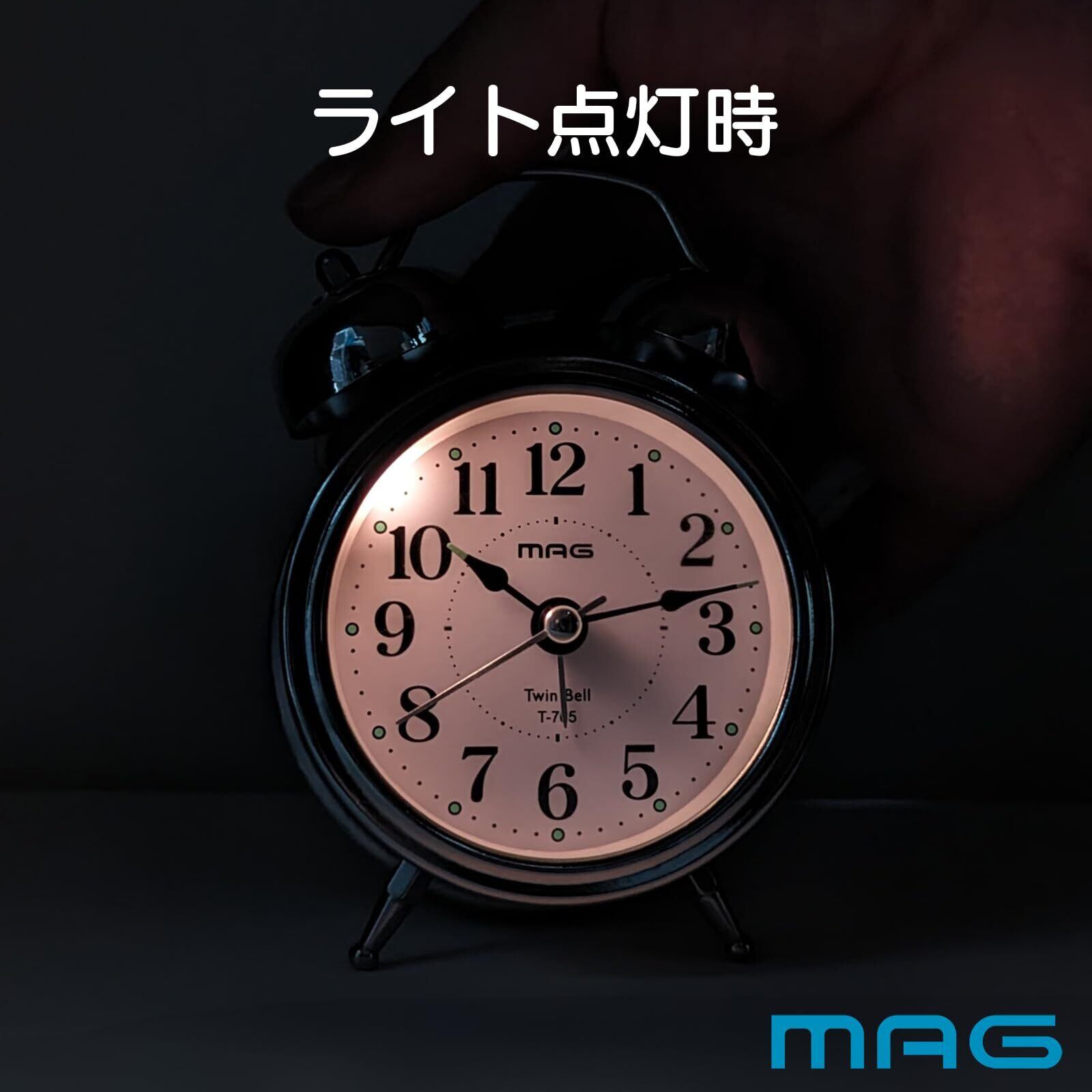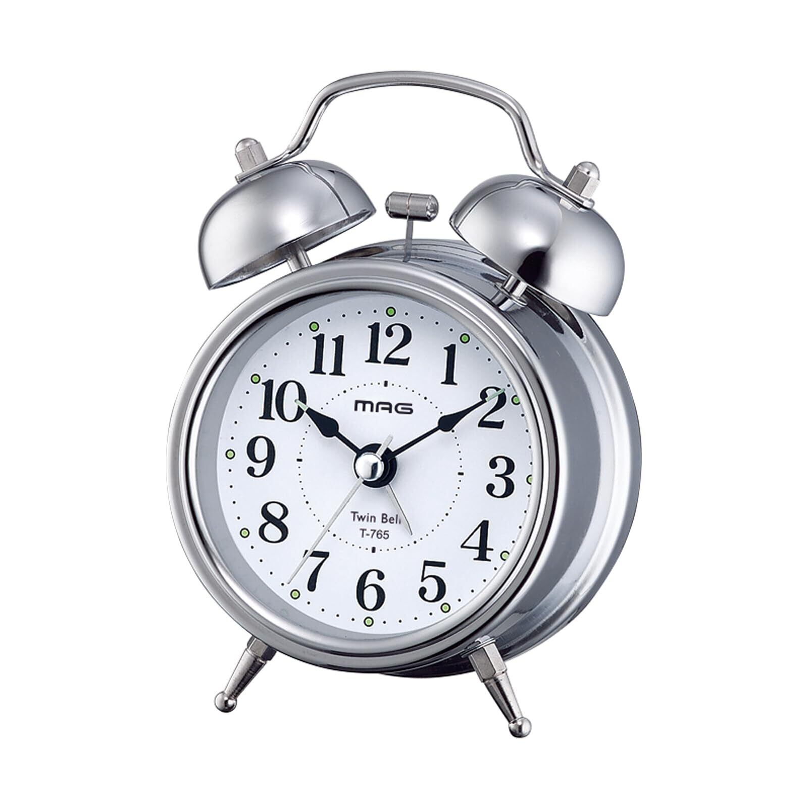 MAG(マグ) 目覚まし時計 置き時計 小型 小さい かわいい ツインベル アナログ 静音 連続秒針 ベル音 アラーム スヌーズ ライト シルバー ベルズミニDX T-765 S-Z ノア精密